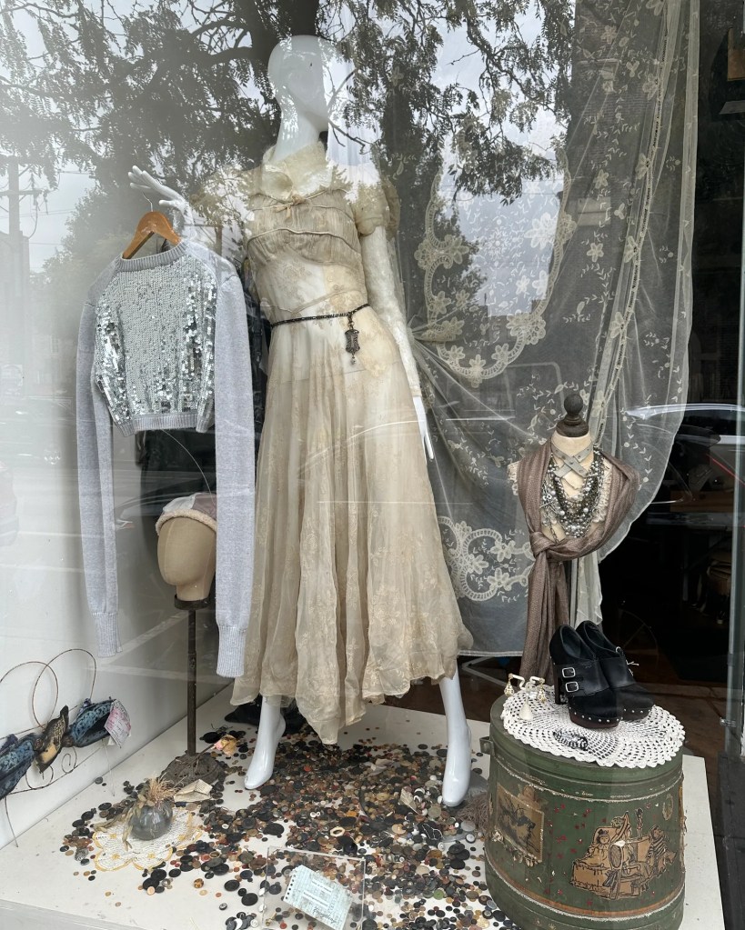 Part of the appeal of such pieces lies in their scarcity. Unlike your typical ‘90s or ‘00s Goodwill finds, there is, unsurprisingly, only so much pre-1930s clothing still in circulation. For the average shopper, these garments are quite difficult to buy in bulk, making them resistant both to instant gratification and overconsumption disguised as a thrift shopping haul. An old Edwardian top on Facebook Marketplace, a 1920s cloche hat at a flea market: it takes digging, negotiating, and post-hunt hand sanitizer, but the payoff and satisfaction of slowed-down shopping lasts lifetimes.