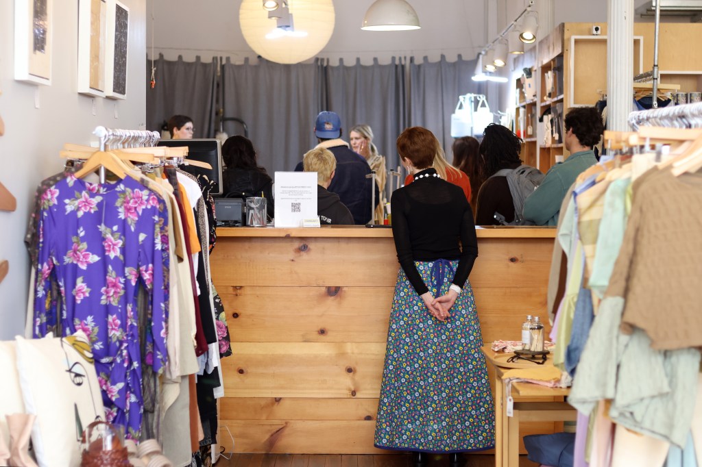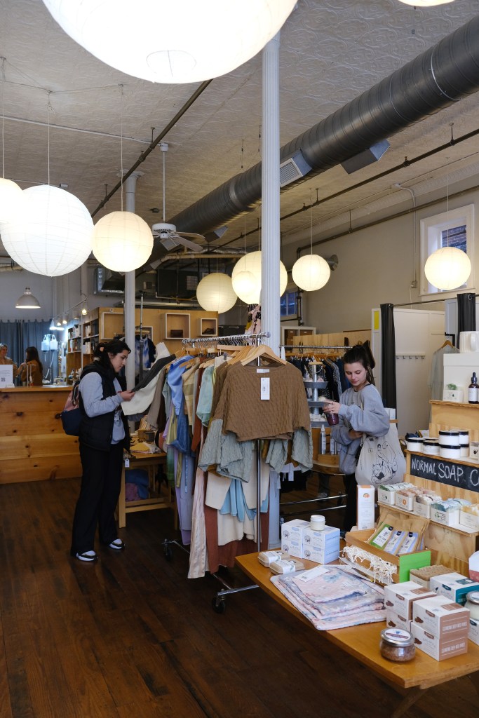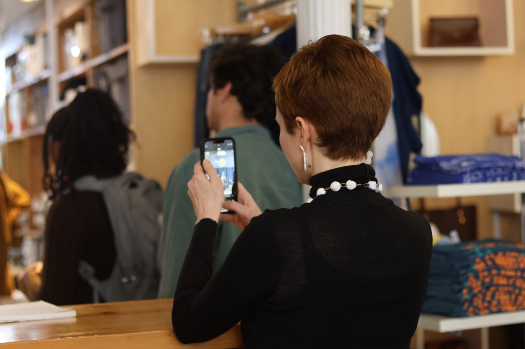 (Photo/Skyli Alvarez)After asking Baumgärtner questions about Community’s sustainable practices, Idacavage’s students shop on Friday, Feb. 17, 2023. The field trip shows her students how nearby businesses and individuals are actively working against unsustainable fashion practices.